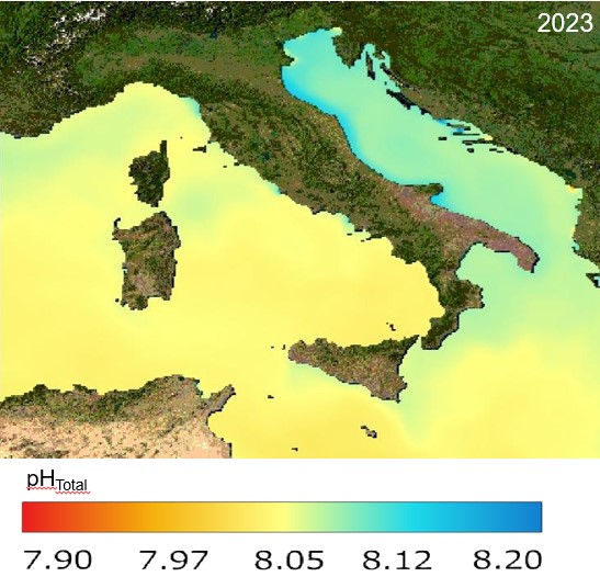 I dati elaborati per la MSFD ( Marine Strategy Framework Directive) non sono tali da stabilire una risposta certa, confermano però che le acque del Mediterraneo orientale sembrano meno colpite dal fenomeno rispetto a quelle del Mediterraneo occidentale. Le osservazioni di pH collezionate dalla stazione di monitoraggio in continuo ISPRA “Sergio Silenzi” nell’Area Marina Protetta di Capo Carbonara (CA), attrezzata con sonde che garantiscono un’estrema accuratezza e precisione, mostrano valori più bassi di pH di quelli del bacino di riferimento.