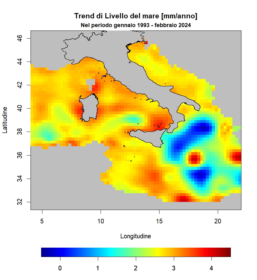 Tali variazioni, seppur minime (dell’ordine di pochi millimetri l’anno), sono però continue e appaiono ad oggi irreversibili. Nel trentennio appena concluso, si sono verificati incrementi in gran parte dei mari italiani, soprattutto lungo le coste, con valori medi del trend pari a circa 2.53 mm/anno.